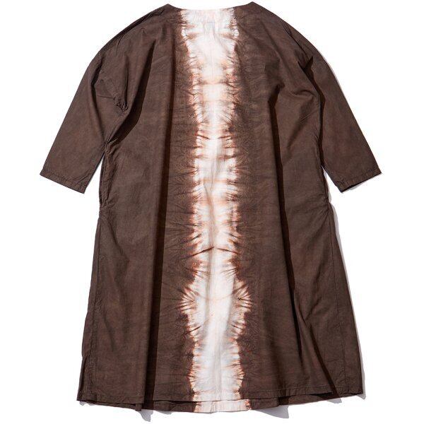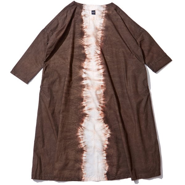 タイプライター素材を泥染めで染色したワンピース。