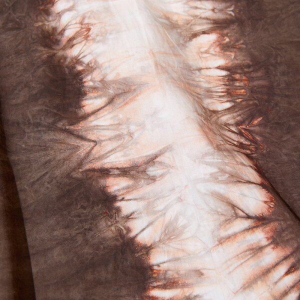 奄美大島に自生する「テーチ木」と奄美でしか作られない鉄分豊富な泥を用い、全て手作業で染めて行く技術。