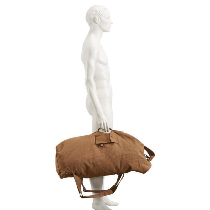 とても頑丈なコ ットンキャンバス生地でできており、持ち物がたっぷり入る65リットルという大容量な上、デ ザインもスタイリッシュです。外側には貴重品や小物が入る便利なポケットがついてい ます。上部の口が大きく開くので物が出し入れしやすく、シンプルな ロッカーシステムもついています。ハンドルと2つのクッション入りキャリーストラップつきで、かつぎやすいダッフルバッグです。