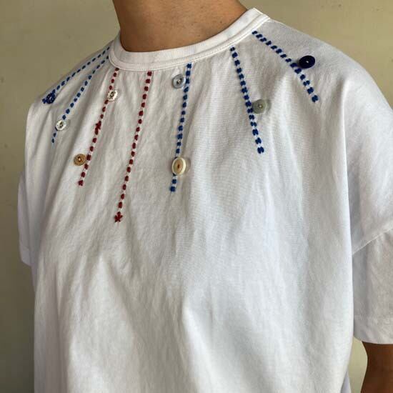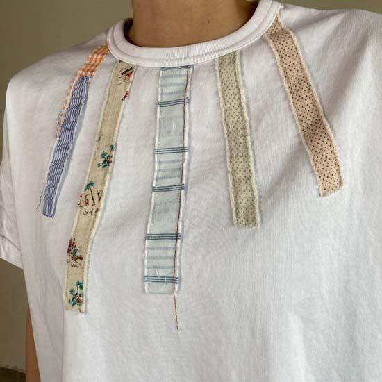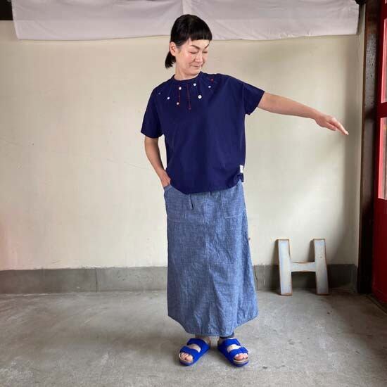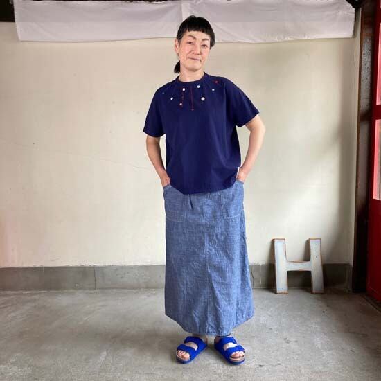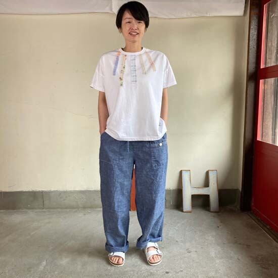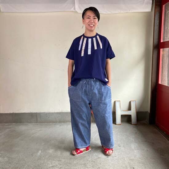 快晴堂さんのパンツやスカートは素敵な作品が多く、どんなトップスを合わせよう!とワクワクします。そんな時にこちらの作品はとても良いのかなとセレクトしました。ロゴ半袖tシャツ以外にも提案の幅が広がり、楽しみです。