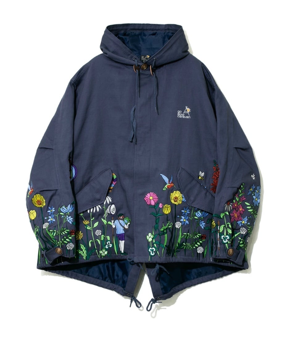 go slow caravan ゴースローキャラバン メンズ コート スラブサテン刺繍モッズコート 全2色 メンズM-L