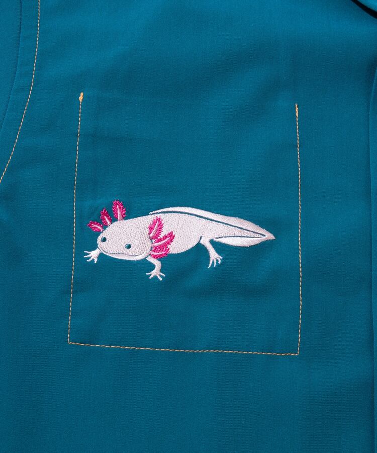 当店ではウーパールーパーの刺繍をセレクトしました。ボディーの色もかわいいのでとても気に入っています。