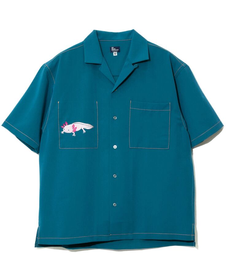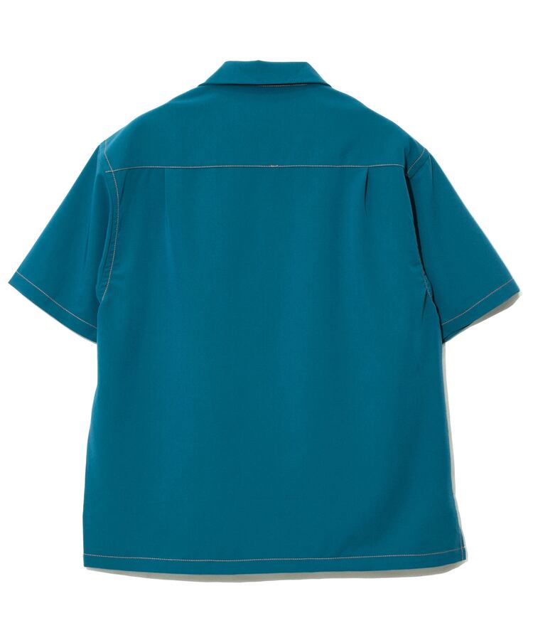 ワンポイント刺繍と言いながら、かなり大きめの刺繍がデーンと構える目立つこと間違いなしのオープンシャツ。しっかりした生地感ながらストレッチが入っているので動きやすいアイテム。