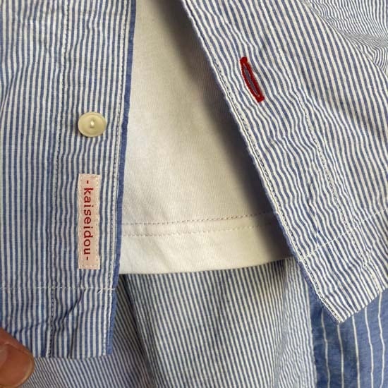 快晴堂 レディース シャツ ブルーストライプパッチワーク 32S11 全1色 ブルー レディース2