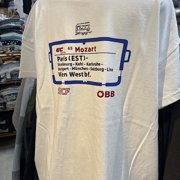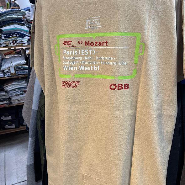 ブランド設立20周年を記念して、過去に手掛けたロゴデザインを復刻させるという企画のこちらのシリーズですが、~憧れのウィーンフィルを聴きに~パリ東駅からウィーン駅までの「特急 モーツアルト号」での旅をテーマにしたプリントです。プリント全体の雰囲気はもちろん、バックプリントの色とボディーの色とのコントラストも素敵です。