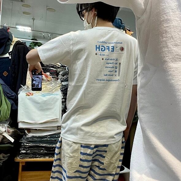 ブランド設立20周年を記念して、過去に手掛けたロゴデザインを復刻させるという企画のこちらのシリーズですが、コペンハーゲンの空港にて~KIDS PARKを探していたら、SUSHI BAR見っけ!!というストーリーのプリントです。登場するワードに躍動感があり、空港ならではの多様性があるサービスにわくわくしますよね。小ぶりなフォントのロゴも素敵だな!とセレクトしました。