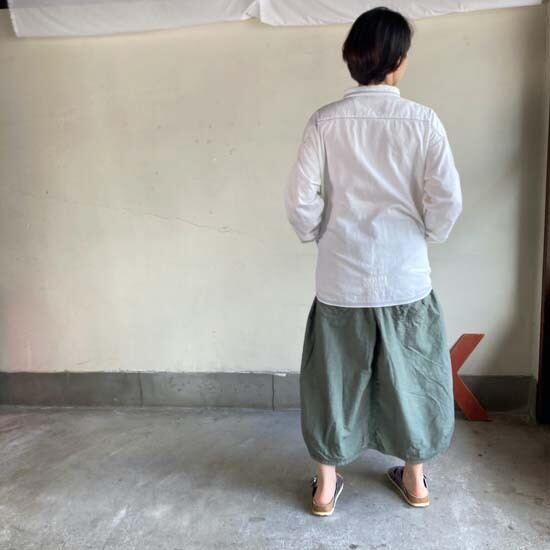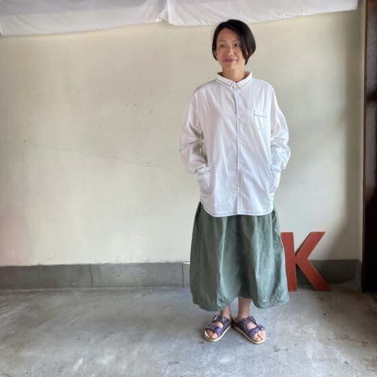 全体にゆったりとした着こなしが好きな方におすすめではありますが、ゆったりしてるのにすっきりと着こなせる、そういった不思議な魅力があるブランドです。ぜひ作品を通じてその魅力を共有していただきたいです。