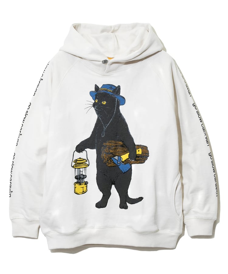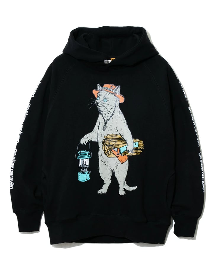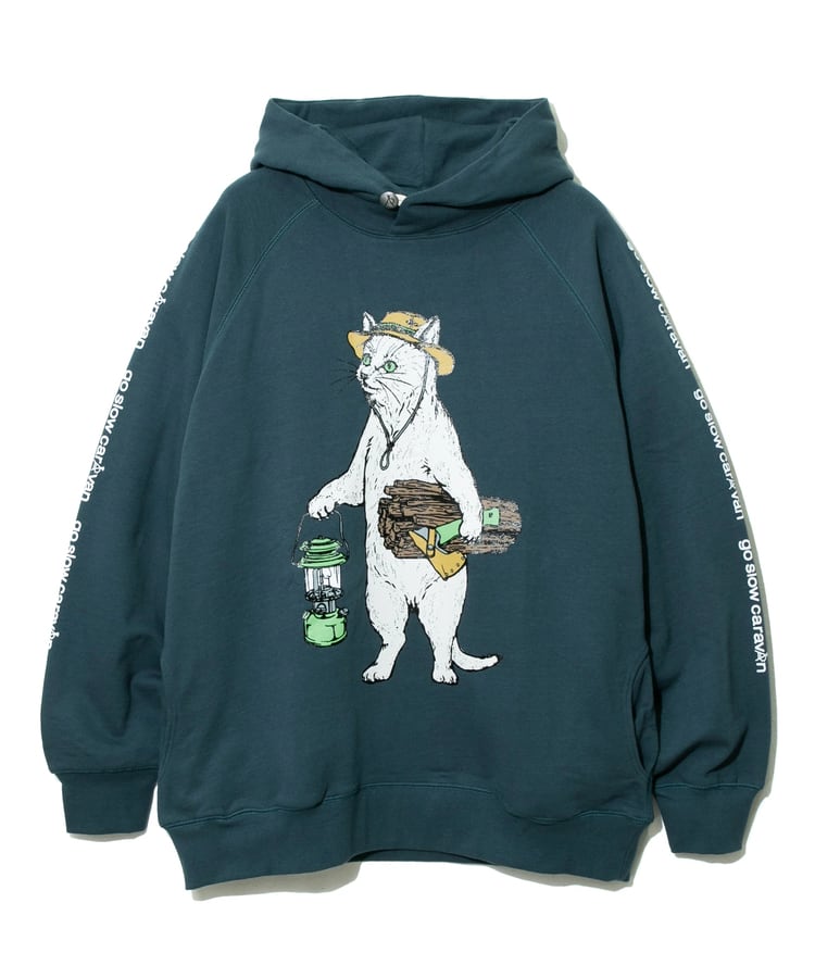 go slow caravan ゴースローキャラバン メンズ パーカー 空紡糸裏毛 キャンパー猫 ラグランパーカー 全3色 メンズM-XL