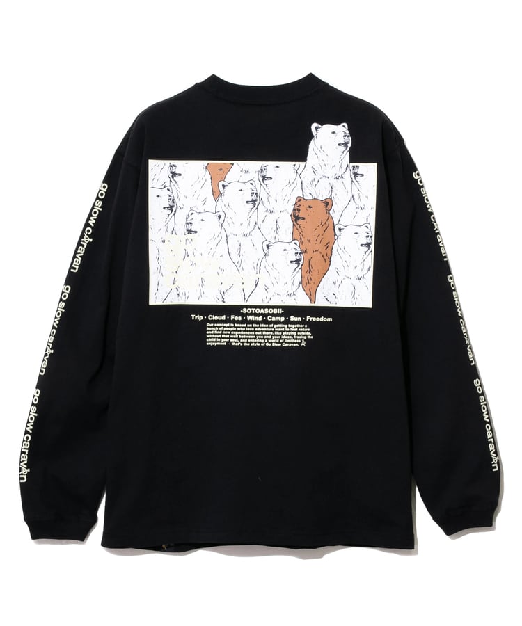 袖にはgo slow caravanのラインプリント入り。