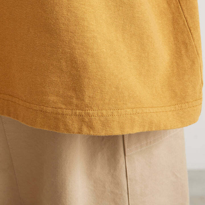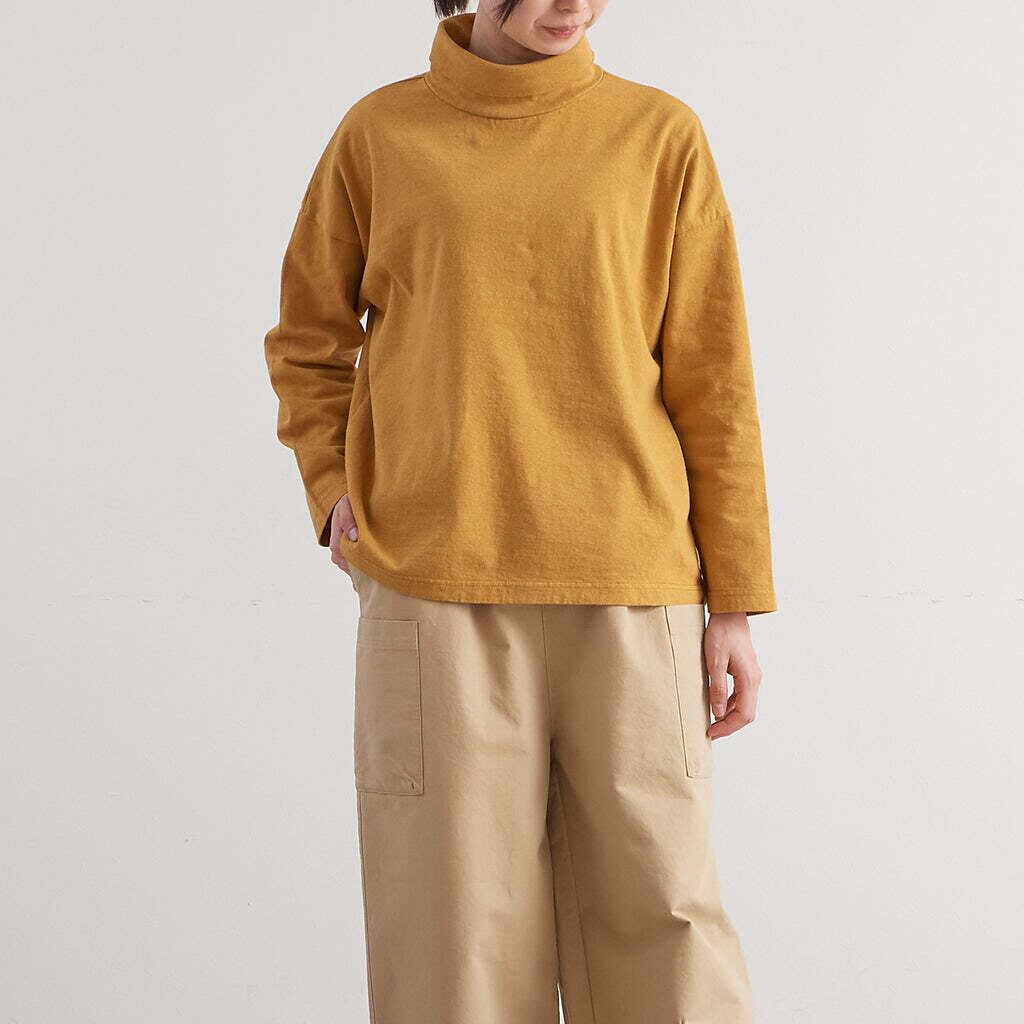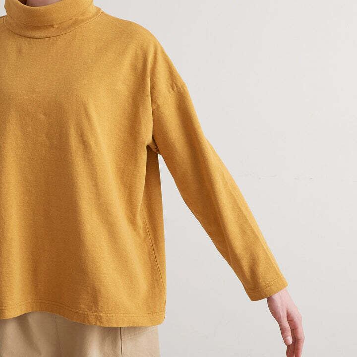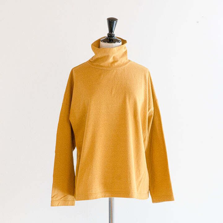 首もとをはじめ、全体にややゆとりをもたせたカタチですので身体を締め付けずに着用いただけます。重ね着のインナーとして重宝しそうですし、適度にハリがある生地ですので、一枚で着用いただいた場合のしっかり感もあり万能なカットソーなのではないでしょうか。GREENやMUSTARDなどの差し色も明るくおしゃれな雰囲気ですので全色をセレクトしました。