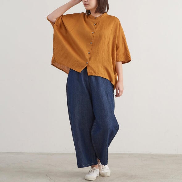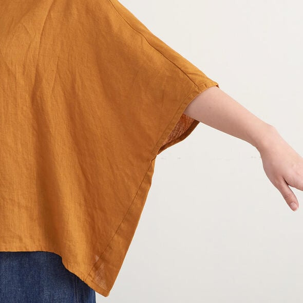 夏に定番的に使用しているやや薄手のリネン生地を使ったドルマンスリーブシャツです。肌なじみ抜群な贅沢な素材感を楽しめます。リラックス感をプラスし、リネン100%で程よい透け感を持ち通気性が良いいです。ゆったりとした身幅なので快適な着心地を実現しています。