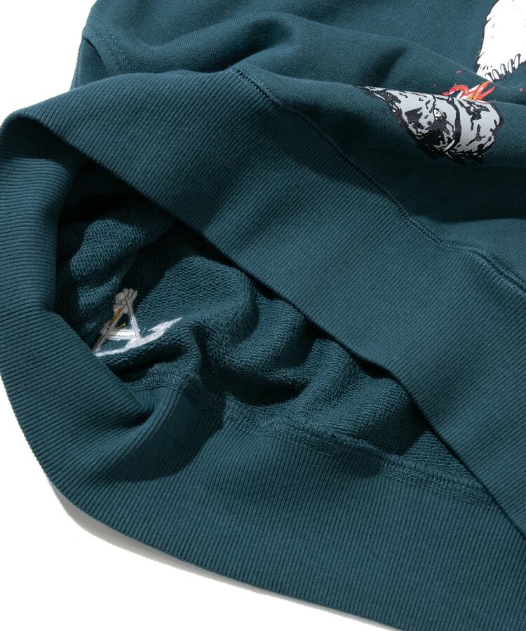 綿100%ヘビーウェイトの裏毛生地。表は空紡糸らしいガシッとした肌触りでありながら、裏のパイル面には太い裏糸を使用しているので空気を多く含みフワッと柔らかい着心地を実現。使い込むほどに風合いの増す生地。クラシック感のある長めのリブや3本針で丈夫な縫製などこだわりのディテールも取り入れた長くご愛用いただけるアイテム達です。