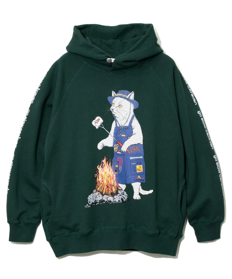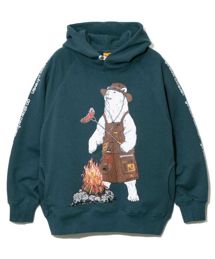 go slow caravan ゴースローキャラバン メンズ パーカー 空紡糸裏毛 焚き火アニマルプルパーカー 全4色 メンズM-XL