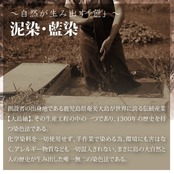 奄美大島に自生する「テーチ木」と奄美でしか作られない鉄分豊富な泥を用い、全て手作業で染めて行く技術。