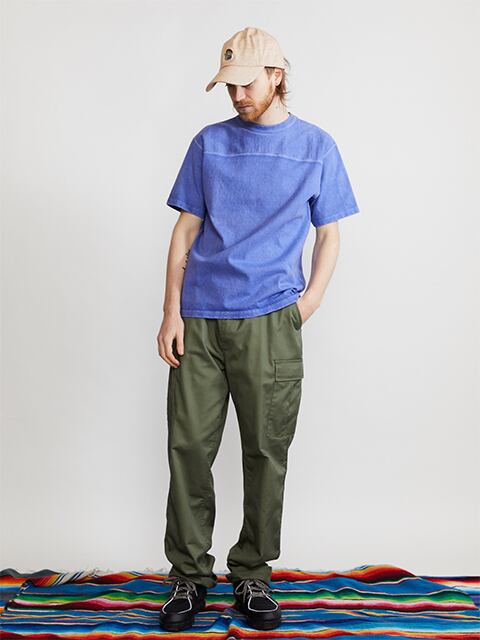 ※製品染め商品の特性上、染め上がりのお色やサイズに若干の個体差がございますので予めご了承ください。また、独特のユーズド感のある表情、多少のゆがみや擦れ、縫い目部分のしわ、編み地の筋やムラなどは製品の特徴です。素材の持つ不均一感やラフ感をお楽しみください。