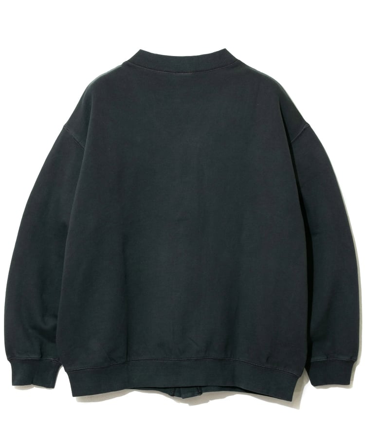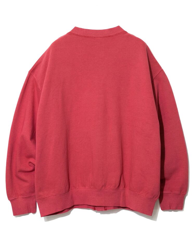 綿100%ヘビーウェイトの裏毛生地。表は空紡糸らしいガシッとした肌触りでありながら、裏のパイル面には太い裏糸を使用しているので空気を多く含みフワッと柔らかい着心地を実現。使い込むほどに風合いの増す生地。クラシック感のある長めのリブや3本針で丈夫な縫製などこだわりのディテールも取り入れた長くご愛用いただけるアイテム達です。