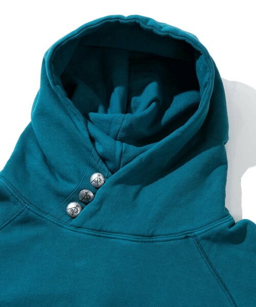 綿100%の杢糸で作った製品にピグメント加工を施すことによって、長年着たかのような落ち着いた雰囲気になっています。ゴースローオリジナルのコンチョボタンを使った定番3ボタンプルパーカーは、ベーシックなデザインで様々なコーディネートにも取り入れやすいアイテムです。
