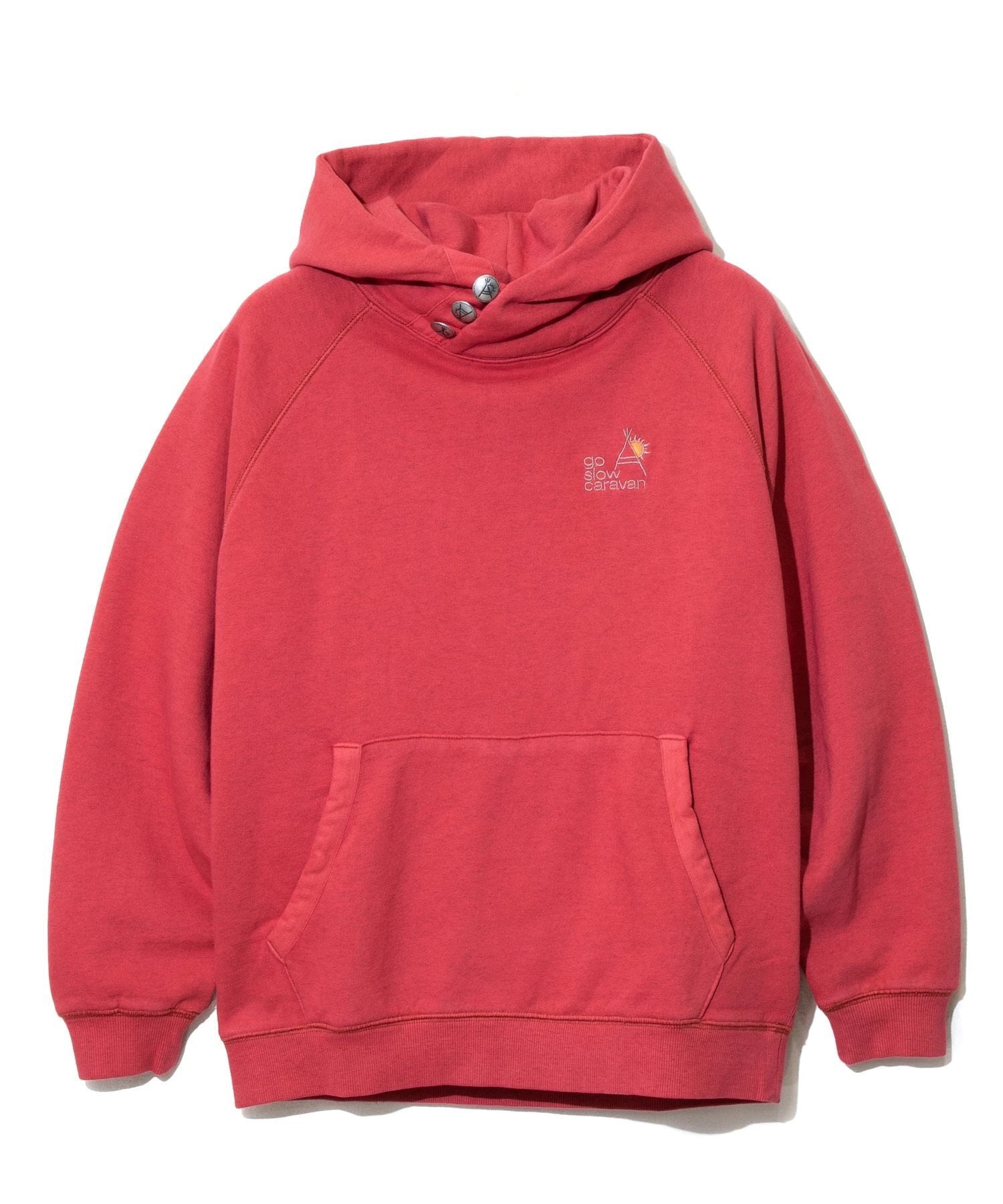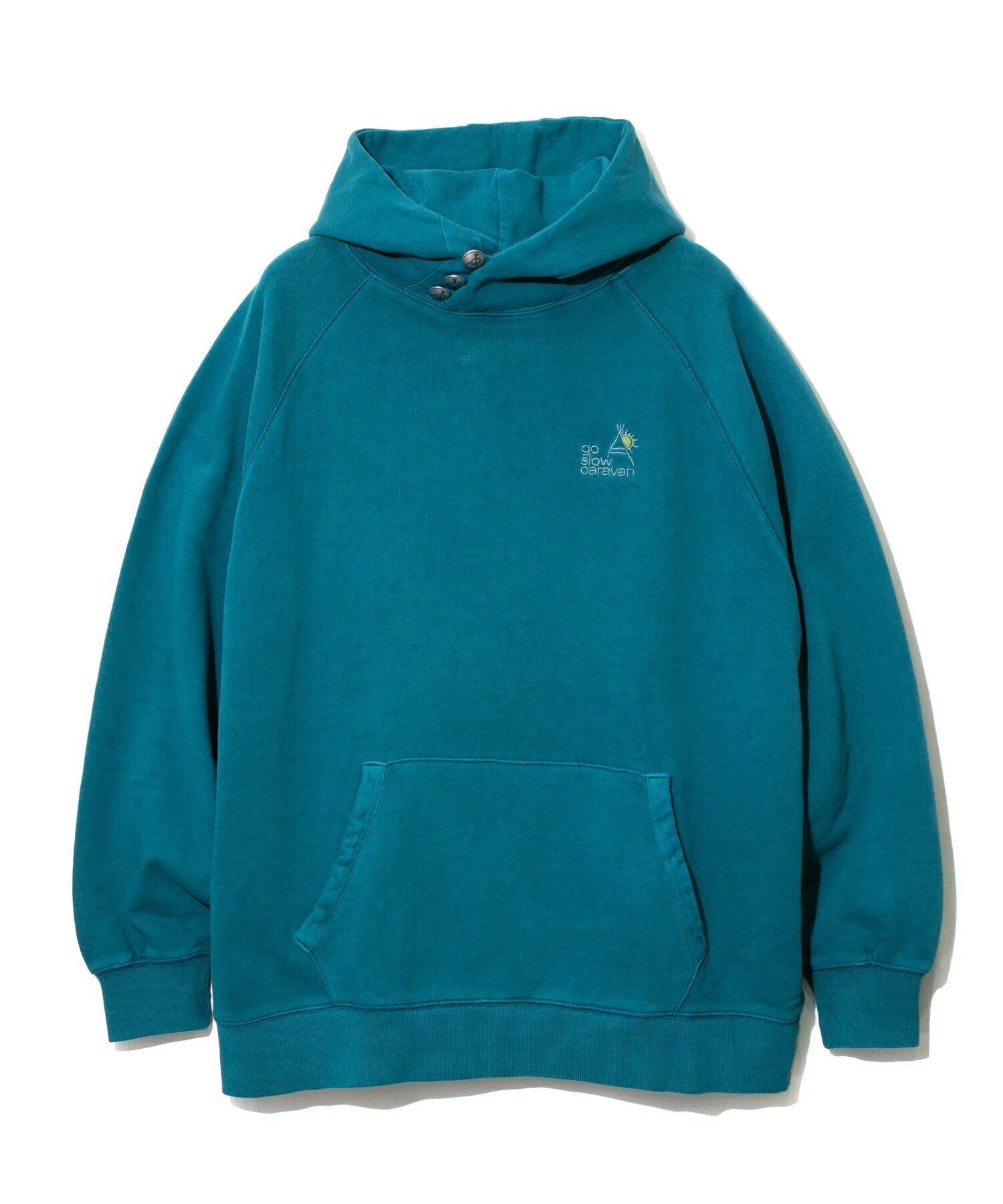 go slow caravanには欠かせない《空紡糸裏毛シリーズ》ピグメントダイ3ボタンプルパーカー☆安心感のある生地と着心地で不動の定番スウェット空紡糸裏毛が今季も入荷いたしました!