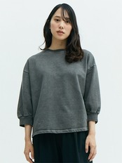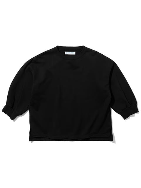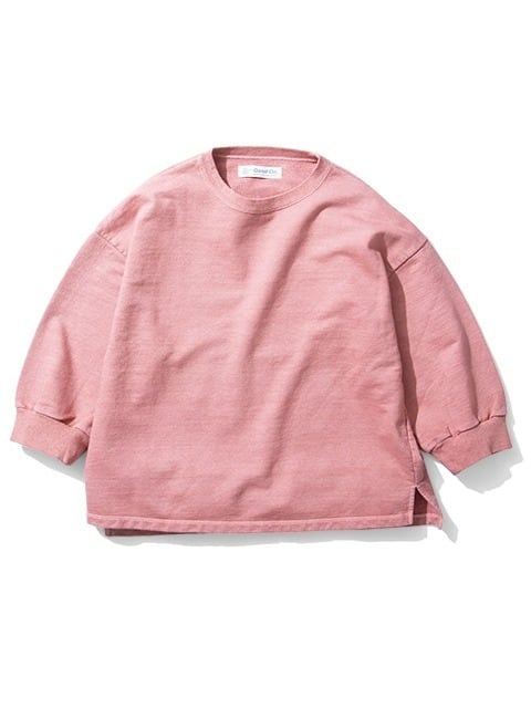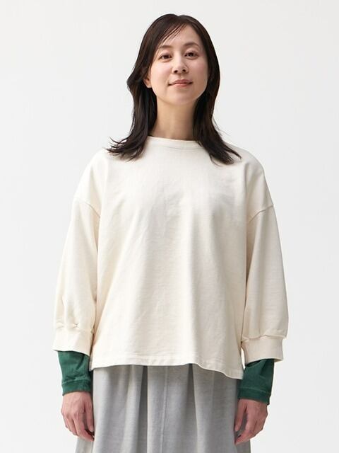 身幅と肩周りをゆったりとワイドにとり、袖先には幅広のリブにたっぷりとしたギャザー、裾にサイドスリットを入れるなど、動きやすさと着心地の良さにこだわりながら、スタンダードなスウェットシャツを鮮度のある上品なアイテムへと昇華させた一着です。