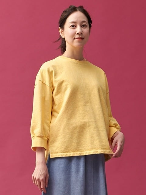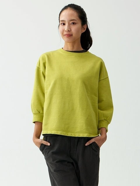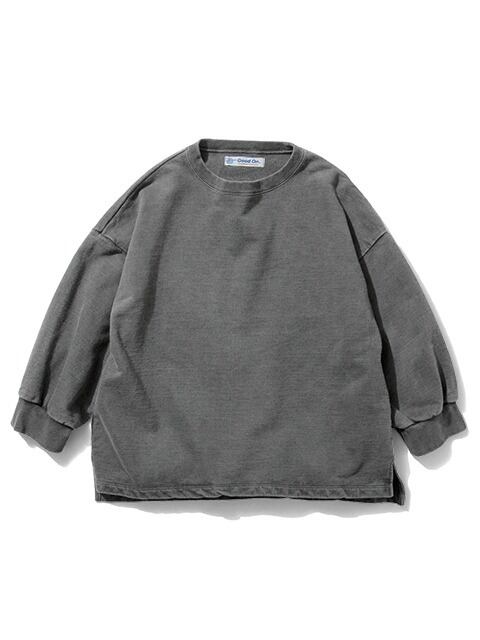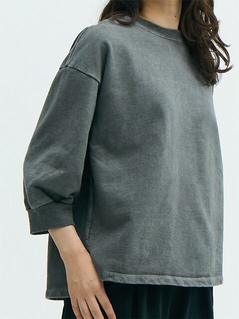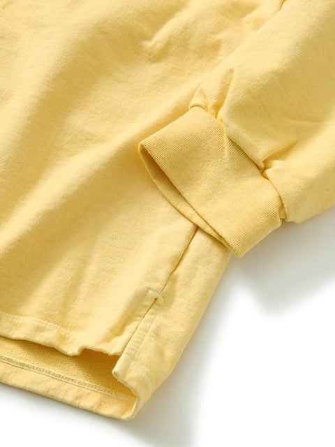 スウェット特有の凹凸に色の濃淡が際立つ顔料染め(Pigment dye)カラーは他にはない味のある表情が特徴で、洗濯の度に表面から徐々に色褪せしさらに風合いを増していくので、長く愛用するほどに上質なビンテージ品のように印象が変わっていきます。