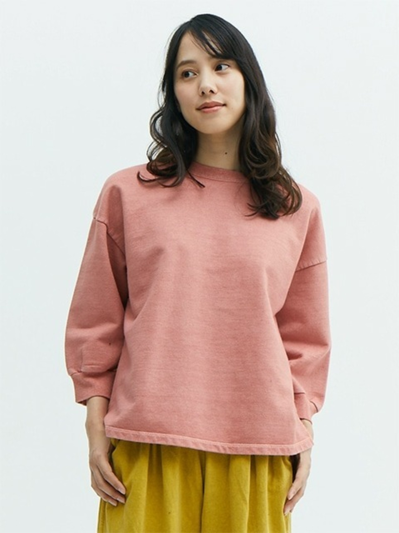 トレンド感のあるワイドシルエット、スウェットならではのカジュアル感、落ち着いた風合い感のある顔料染め(Pigment dye)が絶妙にマッチし、ほど良くフェミニンで大人のリラックス感が漂います。