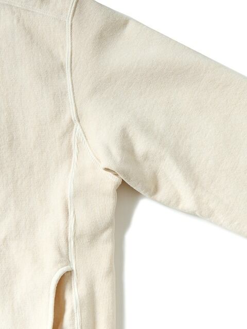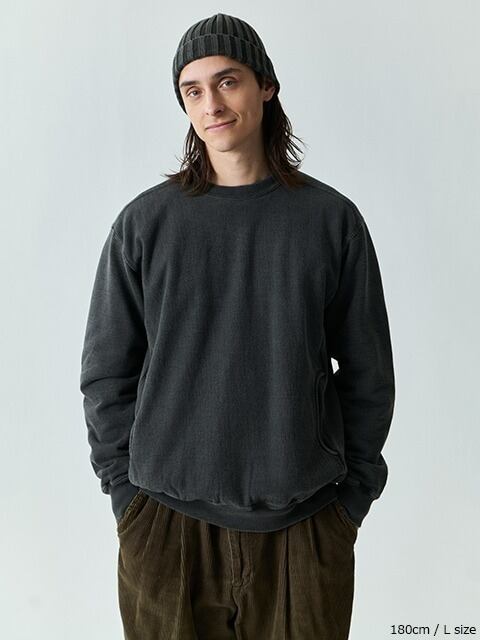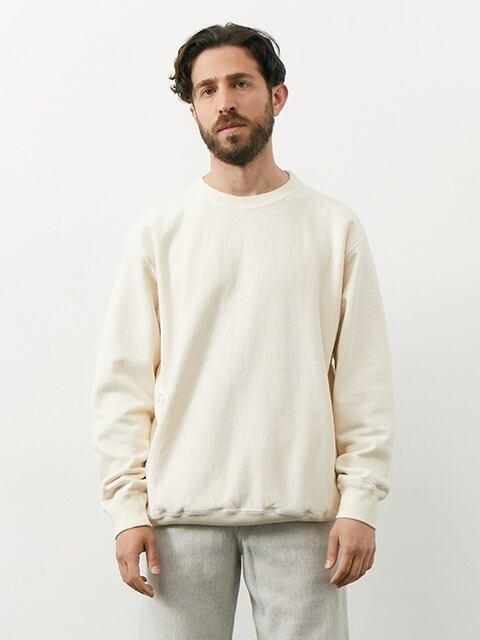 こちらのヘザーグレーは風合い感を重視した製品染めカラーに比べ、よりオーセンティックなスポーツウェアの雰囲気が漂うクラシックな杢グレーカラーと、先染めスウェット特有のふんわりと柔らかく優しい着心地が特徴で、ワンランク上の快適な着心地と安心して着倒せる丈夫さを兼ね備えた、極上のスウェットとなっています。