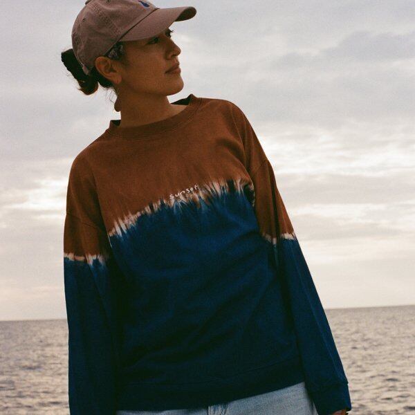 当店では2019年からセレクトしており、唯一無二の染色方法によって表現された個性的な特徴に魅了されたファンから根強い人気を得ています。奄美大島の大自然の中で培われた天然染料である泥染め、藍染めを手染めで仕上げていく染色の技術はもちろんのこと、落ち着いた印象でありつつ、トレンド性もバランスよく取り入れた作風のファッション性の高さも評価されています。普段の着こなしに取り入れやすいカジュアルアイテムにそれらが落とし込まれているのも魅力の一つです。