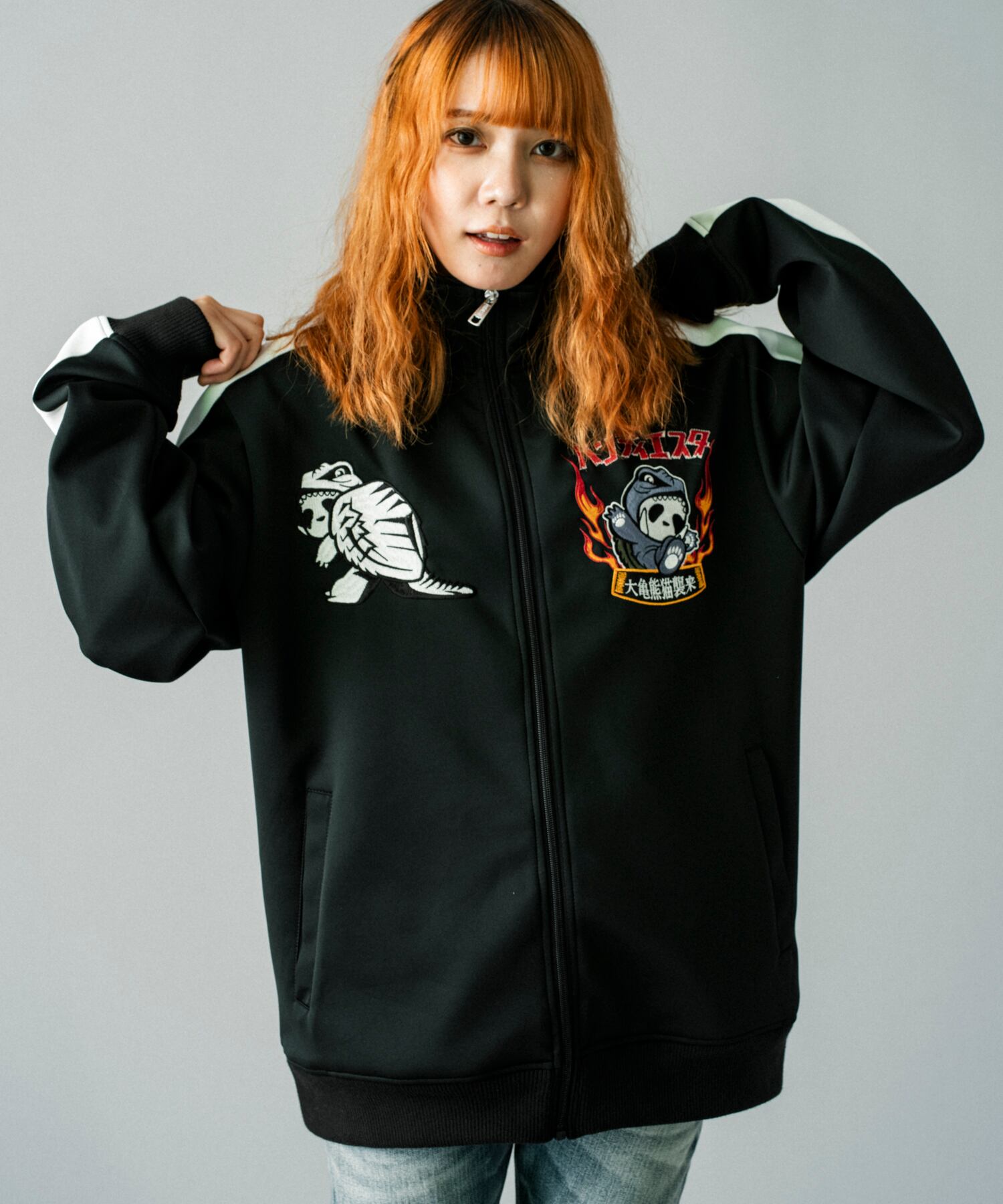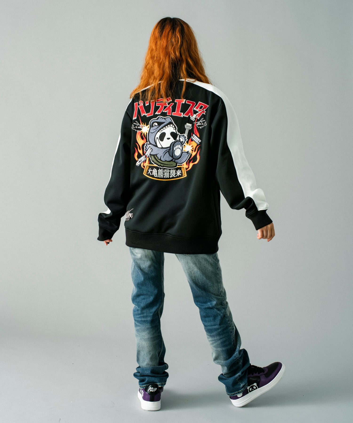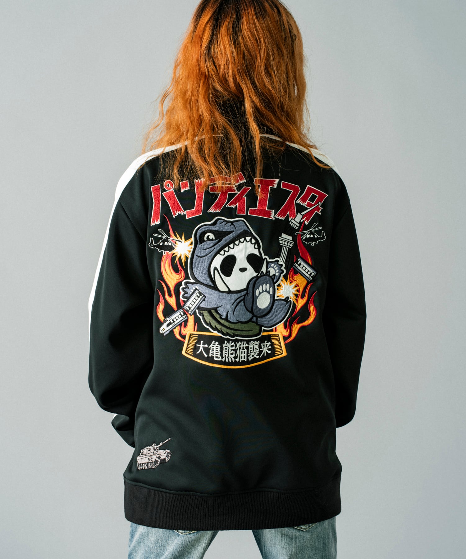お茶目で可愛いパンダがキャラクターのブランド【PANDIESTA JAPAN (パンディエスタ ジャパン)】から、刺繍がゴージャスに施されたかわいいジャージ登場しました。普段は英語で表記されるロゴがこちらの作品ではカタカナになっていて、ポップでかわいい雰囲気です。
