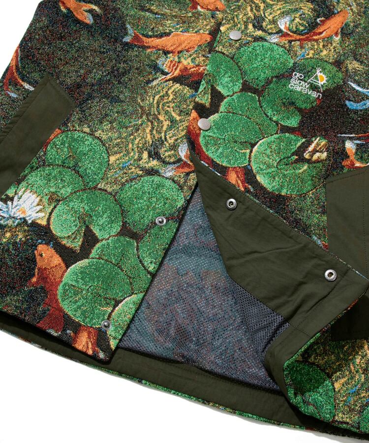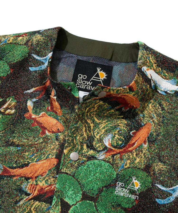 go slow caravanといったらゴブランと言っても過言ではないくらい存在感のある生地をベストで表現。春先のレイヤードアイテムとしてとても重宝します。金魚柄と向日葵柄で登場です。