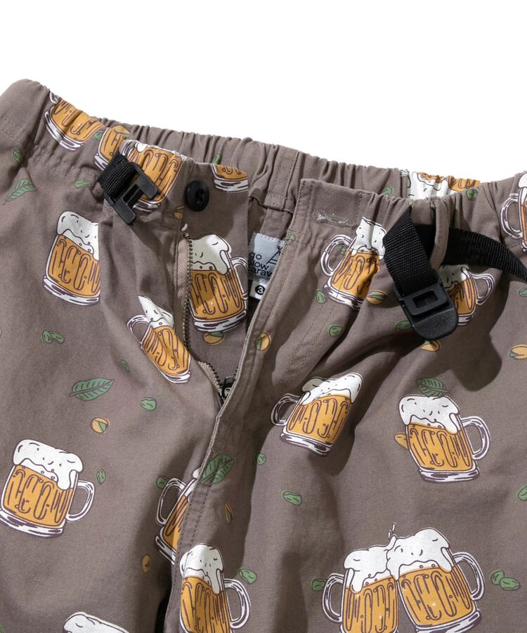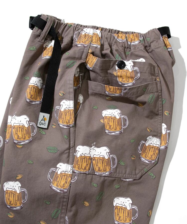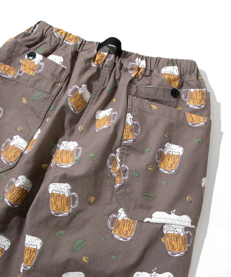 腰回りはワイドながら裾に向かってテーパードしている綺麗なシルエット。ビールとピスタチオ柄、柴犬柄の4色展開。