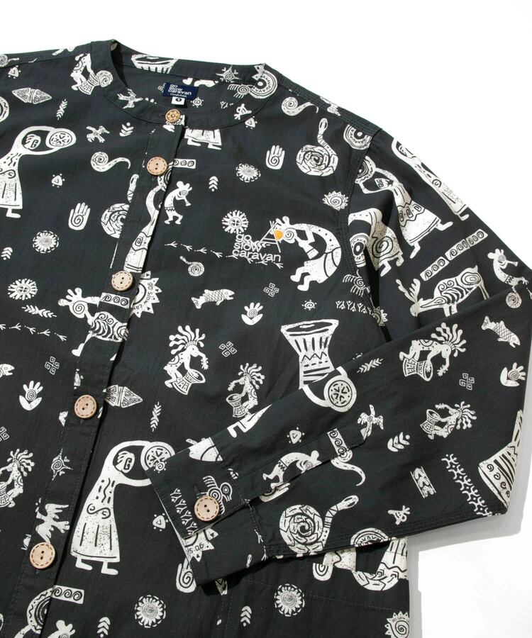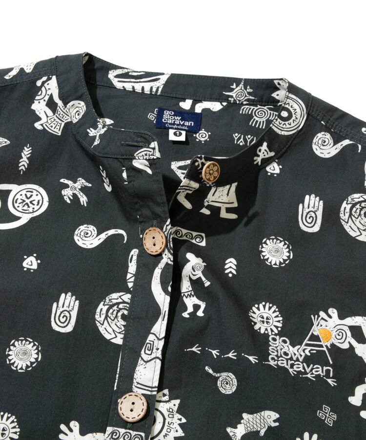go slow caravan ゴースローキャラバン レディース ワンピース オリジナル総柄Ptノーカラーシャツワンピース 全2色 レディースフリー