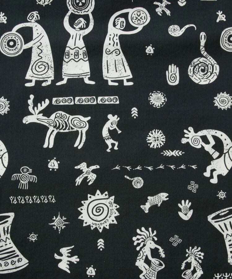 オリジナルの【民族祭り柄】と【CAMP FRIENDS柄】の2柄をご用意。うれしいサイドポケット付き。