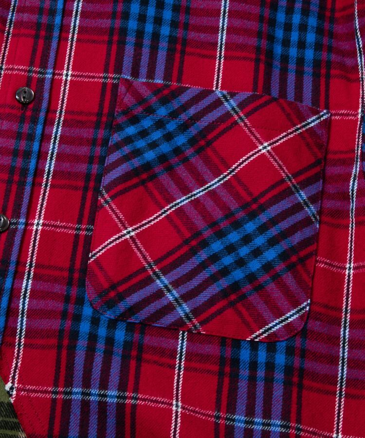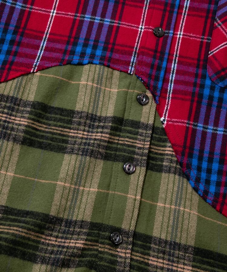 2種類のチェック生地を難しい曲線の縫製で切替えた手の込んだ1枚。手間をかけたデザインアイテムは必見です。
