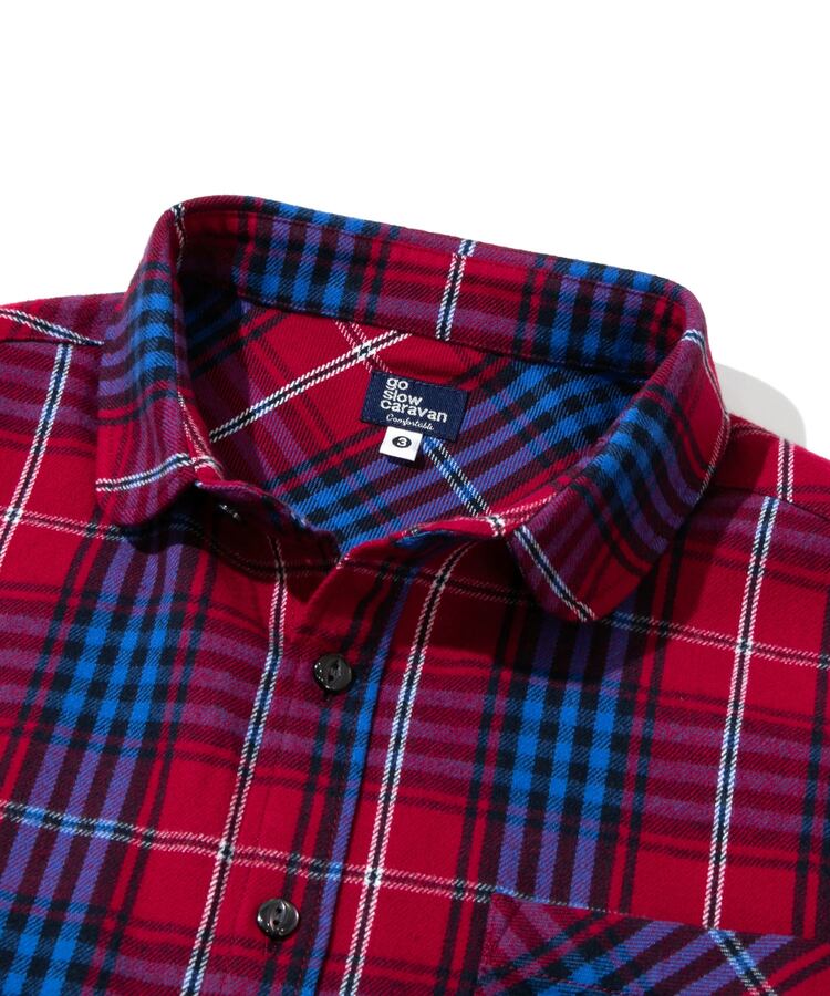 go slow caravan ゴースローキャラバン メンズ シャツ ネルチェックグネグネ切替ショール衿シャツ 全1色 クレイジー1 メンズM