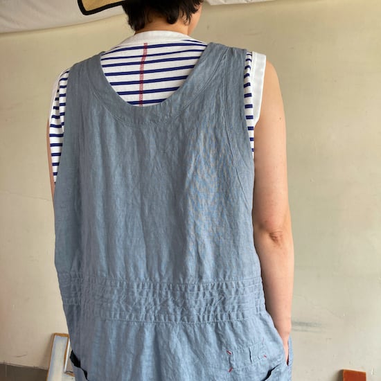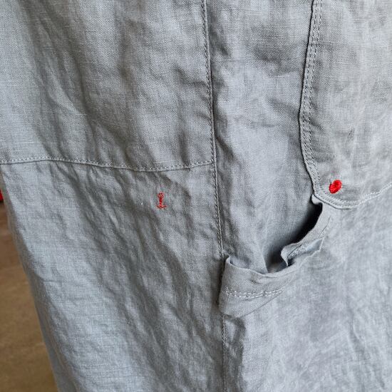 当店では他にフレンチリネンやベルギーリネンなどの麻製品を扱っておりますが、こちらのジャパンリネンはそれらに比べてやわらかいのが特徴の生地かと思います。ぜひ着用感の違いを試してみてほしいです。