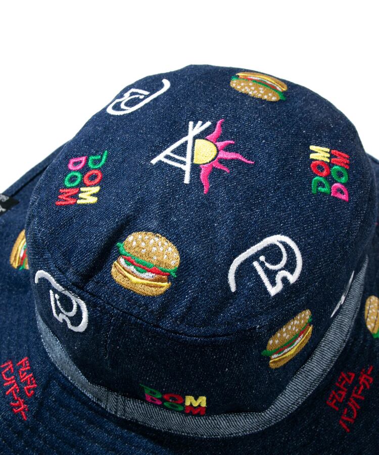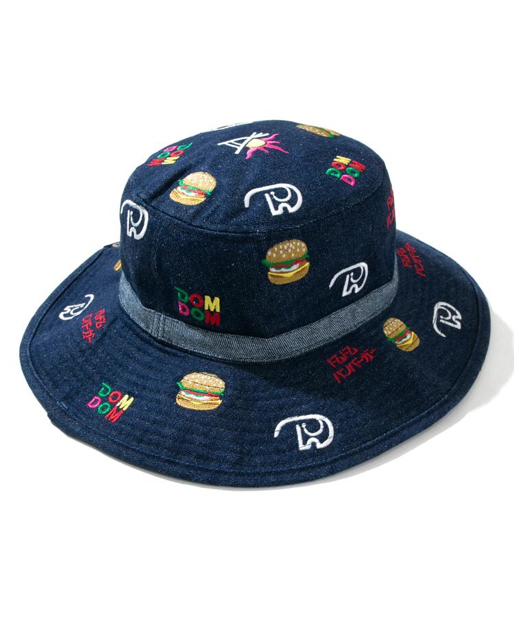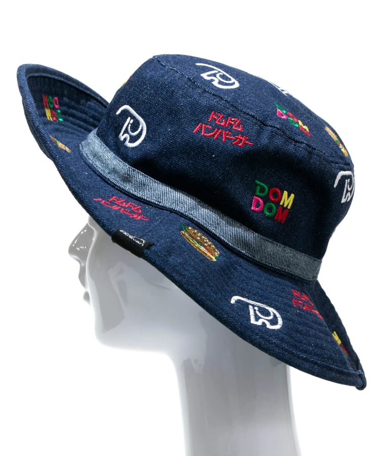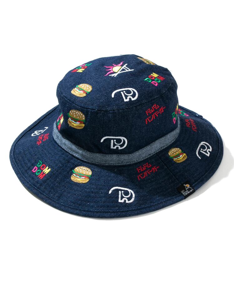 定番のキャンパーハットに、ドムドムのマスコットキャラクター「どむぞうくん」やハンバーガー、旧ロゴを総刺繍。広めのブリムはUVカットと日差しよけに十分な広さ、汗止めバンドは吸水速乾素材を使用。ブリムにワイヤーを備えているので、好みの形に整えて被っていただけます。