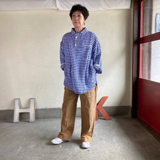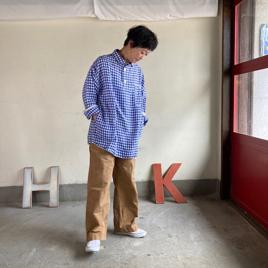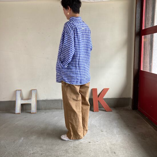 また、ナチュラル系のブランドの作品ですと夏場のリネンシャツは半袖であることが多く、こちらの作品は長袖であることも貴重なのかなと感じます。夏にあまり半袖を着ない方でも涼しく着こなせます。