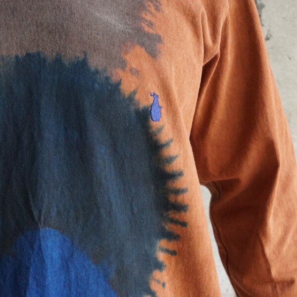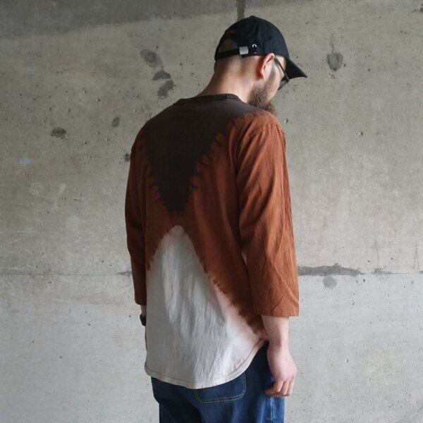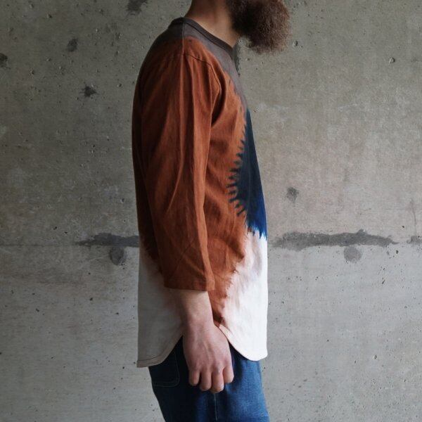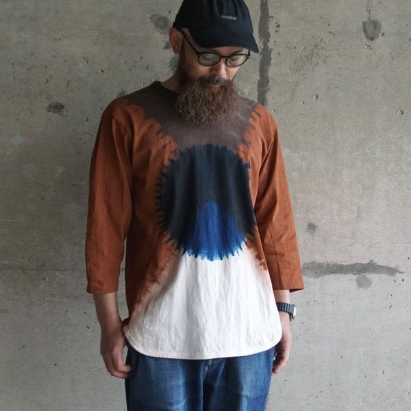 藍染と泥染を組み合わせ複雑に染め上げた七分袖カットソー。