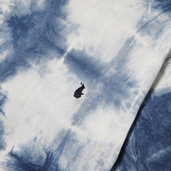 縦、横に折り重ね藍染を落とし込んだ一枚。