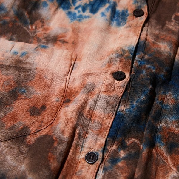 当店では2019年からセレクトしており、唯一無二の染色方法によって表現された個性的な特徴に魅了されたファンから根強い人気を得ています。奄美大島の大自然の中で培われた天然染料である泥染め、藍染めを手染めで仕上げていく染色の技術はもちろんのこと、落ち着いた印象でありつつ、トレンド性もバランスよく取り入れた作風のファッション性の高さも評価されています。普段の着こなしに取り入れやすいカジュアルアイテムにそれらが落とし込まれているのも魅力の一つです。