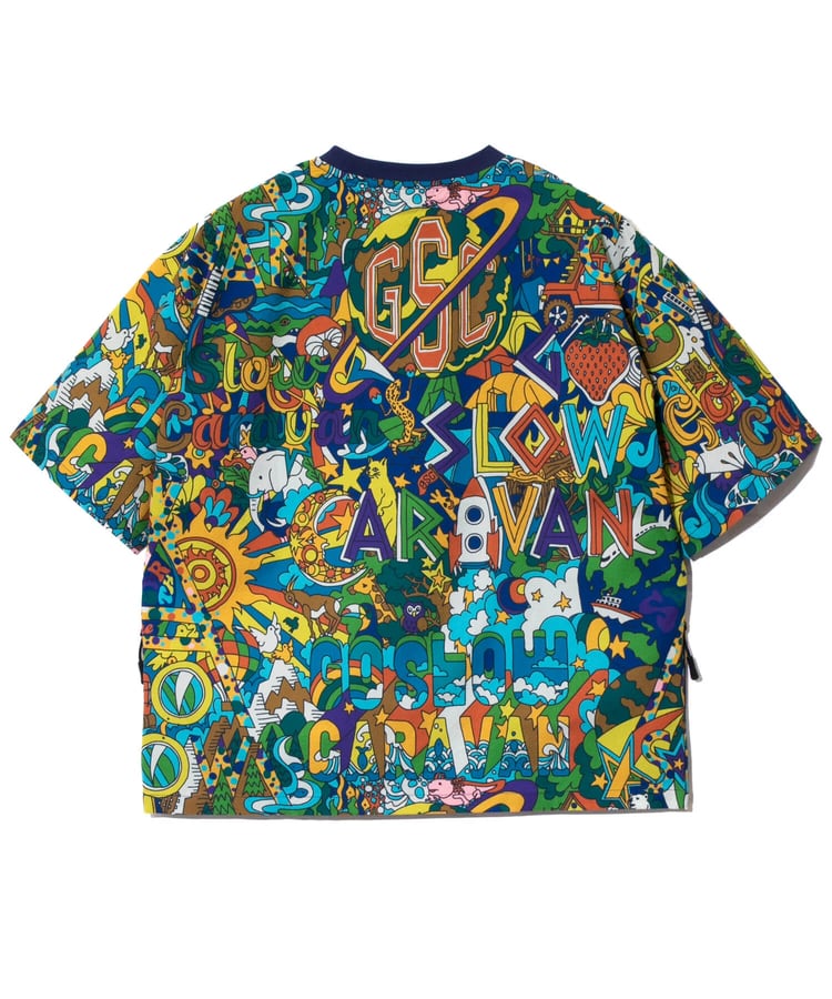 go slow caravan ゴースローキャラバン メンズ tシャツ ストレッチサッカー総柄プリントS/STEE 全3色 メンズM-XL
