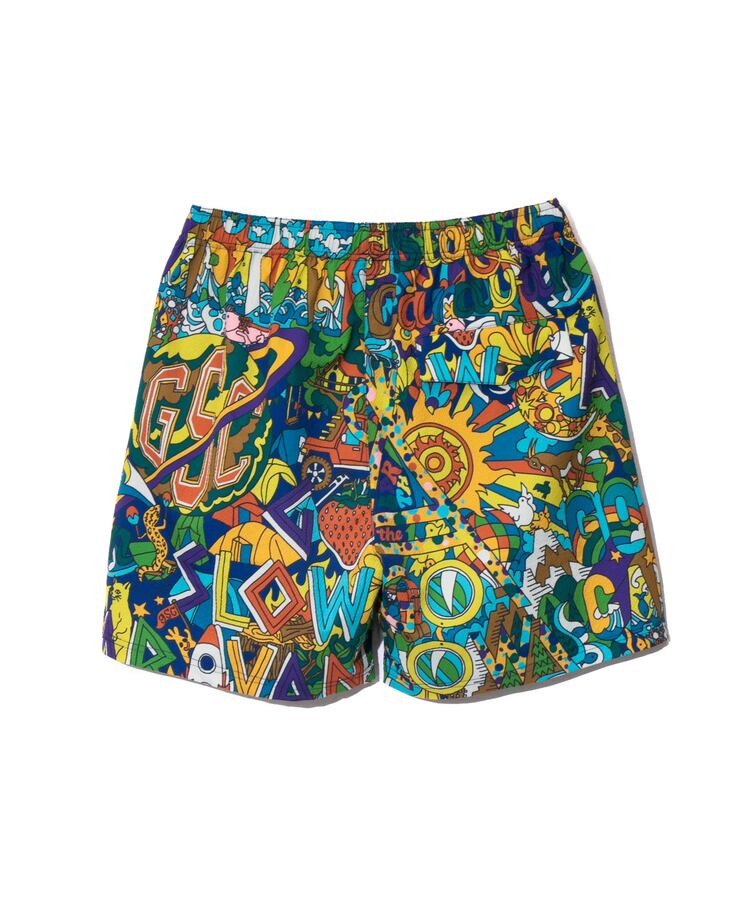 中でも、人気の総柄である「サイケ柄」「宇宙柄」はブランドのアイコンとも言えるかわいい柄で、その他にも人気の「クマ」や「猫」のアニマルプリントシリーズはブランドの枠を超えて大手アパレルメーカーさんやテレビ番組や他業界の企業とコラボしたり、シーズンごとに誰もが知っている有名な車やキャラクター、アニメなど様々なカルチャーとのコラボ作品も手掛けています。例えば、2023年スプリングサマーでは2022年に引き続き日本を代表する車のブランドである「日産」とコラボしました。名車スカイライン「ハコスカ」「ケンメリ」や「R32 GT-R」のは代表的なデザインになります。また、過去には「キン肉マン」「ウルトラマン」「ストリートファイターⅡ」「ムーミン」「セサミストリート エルモ」「ポケモン ピカチュウ」「グレムリン ギズモ」などを手掛けており、それぞれの発売時にはとても盛り上がった記憶があります。