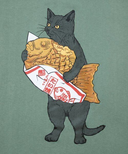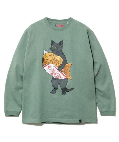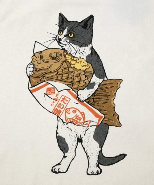 ゴースローキャラバン特製たい焼きをもった猫ロンTEE。